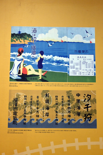 先日、横浜市電保存館に行きました。各型の市電車両が保存されていますが、他に往時のポスターなどが掲示されています。その一枚に横浜市内海水浴場のポスターがありました。