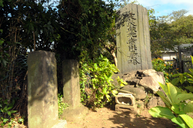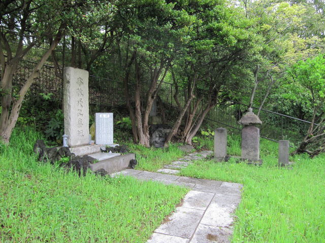 広場の奥に下村観山顕彰碑が建立されています。案内に『大正二年( 一九一三年)原三渓の招きでここ和田山にアトリエを構えた。当時は、白帆の船が行き交う本牧の海を望む景勝の丘で、国の重要文化財に指定された「弱法師(よろぼうし)」などを描いている』と記されています。