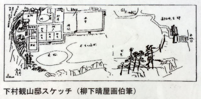 *7 「下村観山邸スケッチ(柳下晴屋画伯筆)」 レストハウス付近の案内板より