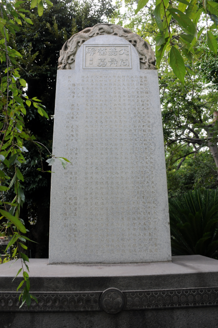 境内に入ると直ぐ右手に「震災狭死者供養塔」、その先5mほどに「大谷嘉兵衛翁記念碑」が建立されています。