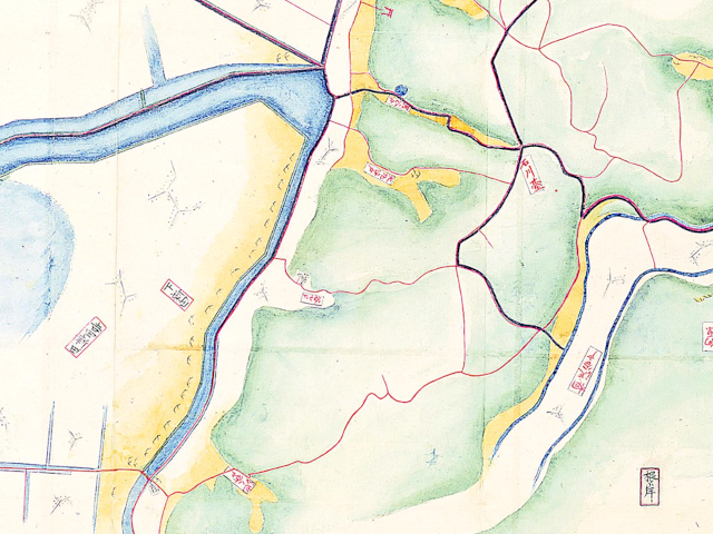 横濱開港直後に福井藩は横浜湾南岸の警備を命じられ、拠点として築いたのが太田陣屋ですが、警備のために御持場海岸分見画図(*1)を制作します。右図はその部分ですが、周囲の状況から、「谷ヤド」と記されている所が後の地蔵坂です。鮮明でありませんが、上り口に地蔵堂らしきものも記されています。