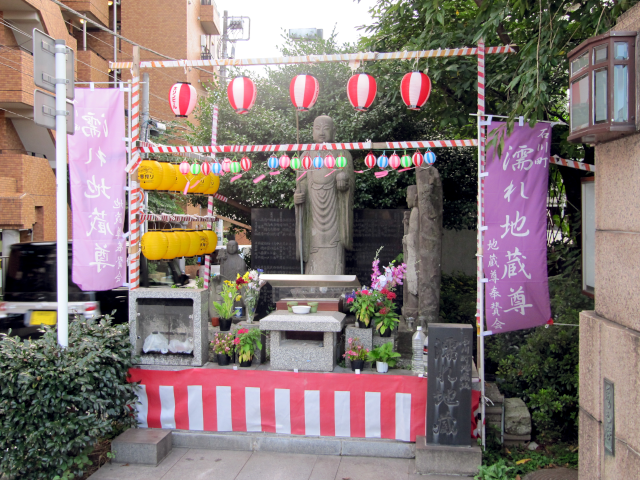 地藏坂の名称は、坂の上り口にあった地蔵堂に因みます。坂を上り始めて直ぐに小坂の上り口がありますが、その脇の小さな堂に納まる五尺余りの地蔵尊で、関東大震災で倒壊します。いま亀の橋東詰めに鎮座する濡れ地蔵とは異なります。